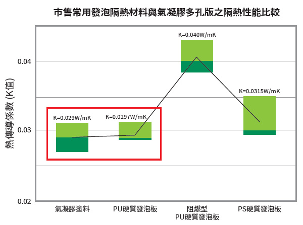 氣凝膠塗料-讓建築物穿一層涼感衣 (最有價值的中塗) 具有低熱傳導係數(K=0.029W/mK)的塗料,建議施作厚度3mm(1mm阻擋約33℃)。 氣凝膠塗料優點: